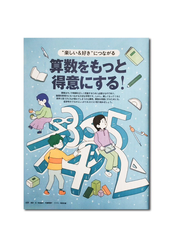 DreamNavi [ドリーム・ナビ]1月号(株式会社アーク・コミュニケーションズ) 算数をもっと得意にする! サイズ:233mm×301mmドリームナビ1月号の中扉のイラストを担当させていただきました。勉強に入りやすいような明るい印象を与えるイラストを目指しました。ご担当の方には、最低限入れたいものをご提示いただき自由に制作をさせていただきました。 Category: Book Illustration Date: 2025年11月18日 Share: